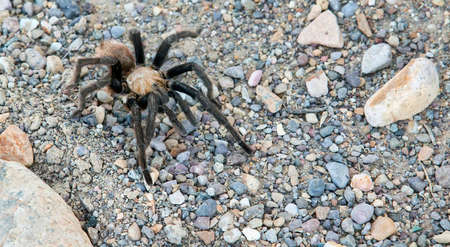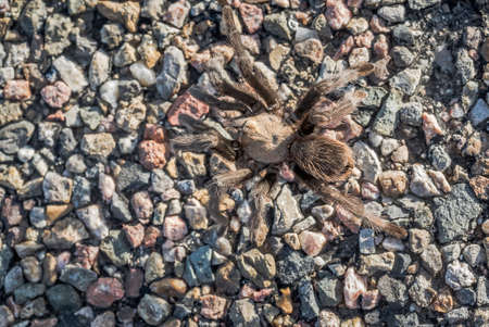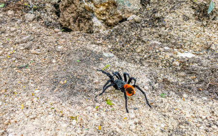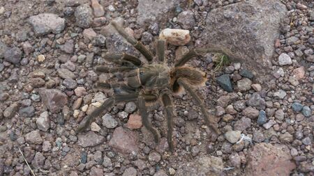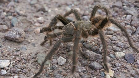 Tarantula brown black crawls on the ground in Playa del Carmen Quintana Roo Mexico.