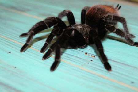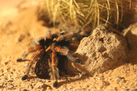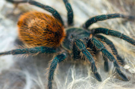 Beautiful spider tarantula Brachypelma boehmei closeup. Photo dangerous spider