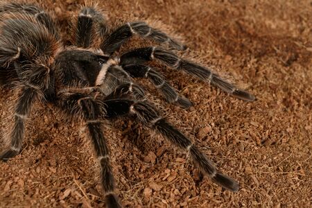 Beautiful spider tarantula Grammostola pulchra closeup. Photo dangerous spider