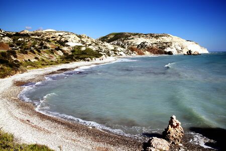 Seascape. Cyprus Paphos Aphrodite's rock. The Cyprus beaches on Mediterranean sea.