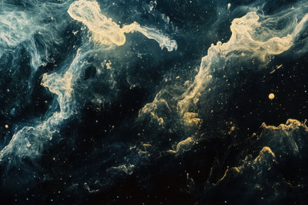 Abstract cosmic nebula with swirling clouds of gas and dust.