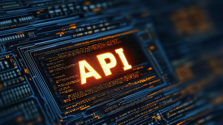 Abstract Digital Technology Background with API Text and Glowing Elements for Software Development and Programming Concepts