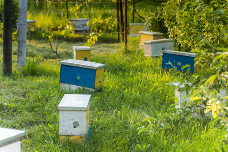 Beehives in the garden. Beekeeping and apiculture.