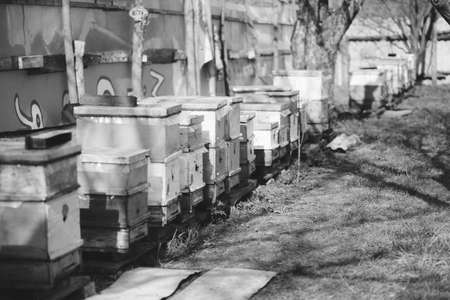 Hives in the apiary - selective focus