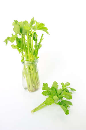 Celery on white background. Healthy food concept.