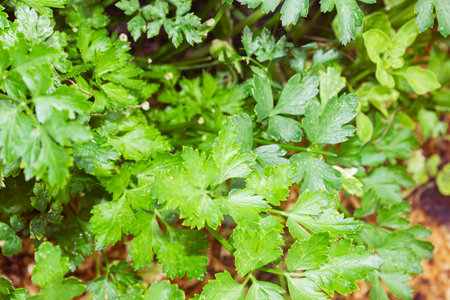 Green parsley bush growing on the ground