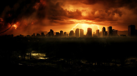 the city sky seemed to be on fire and the sky turned black professional photography