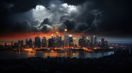 cityscape orange lightning
