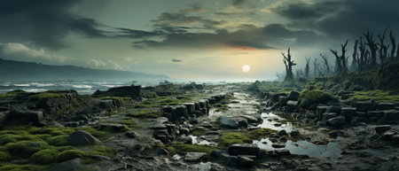 Fantasy landscape with dead trees in the swamp, 3d render