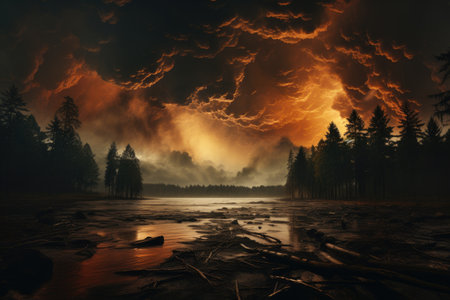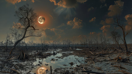 desolate gloomy and poisoned landscape with dead trees