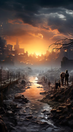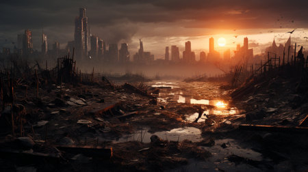 Apocalyptic Cityscape at Sunset