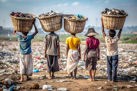 Poor children collect garbage for sale because of poverty, Junk recycle, Child labor, Poverty concept, human trafficking, World Environment Day,