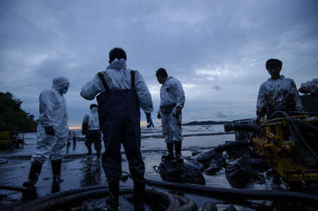 crude oil on oil spill accident on Ao Prao Beach at Samet island on July 31,2013 in Rayong,Thailand
