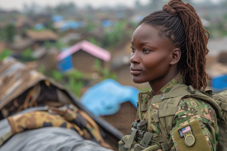 A soldier in an African village is on a mission to assist locals, fostering community bonds and addressing needs with empathy and respect. soldier