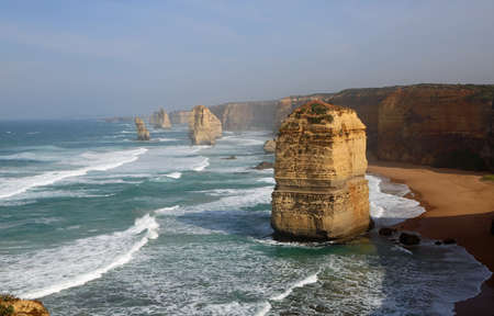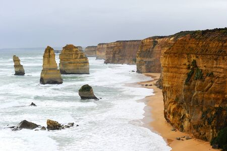 The coastline with the wild ocean of the Twelve Apostles or Port Campbell National Park is the highlight on the Great Ocean Road, Victoria, Australia.