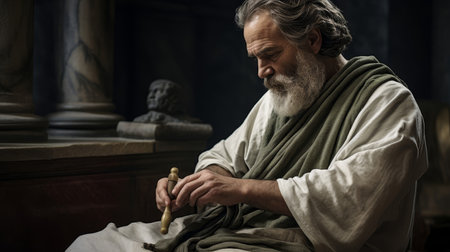 Greek philosopher sitting with his back to the Athenian Areopagus Generative AI Illustration.