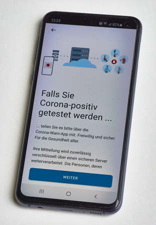 Corona positive with the warning app. Smartphone app to combat the corona pandemic in Germany.
