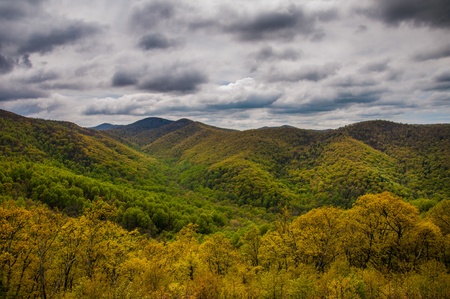 Cloudy spring view from Skyline Drive in Shenandoah National Park, Virginia.