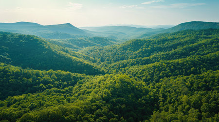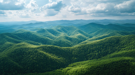 Aerial view of the lush green hills of the Appalachian Mountains, with plenty of space for text