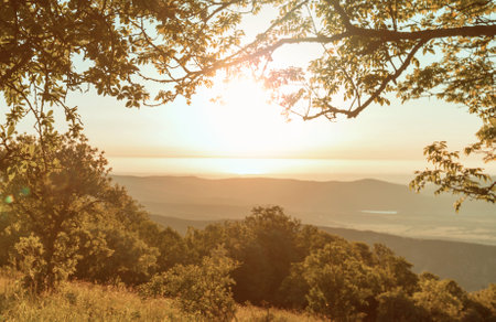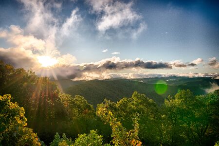Great Smoky Mountains National Park, North Carolina, USA - June 19, 2018: Sunrise Landscape Great Smoky Mountains National Park Gatlinburg TN and Oconaluftee Valley Cherokee NC