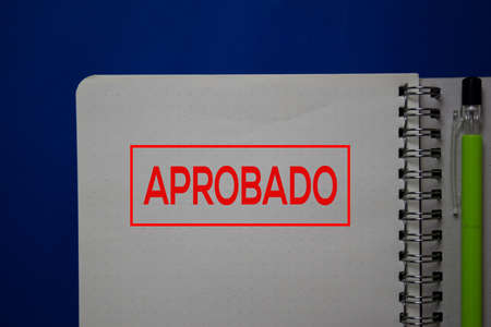Aprobado write on a book spanish language isolated on blue background.