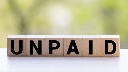 UNPAID word made with building blocks, concept