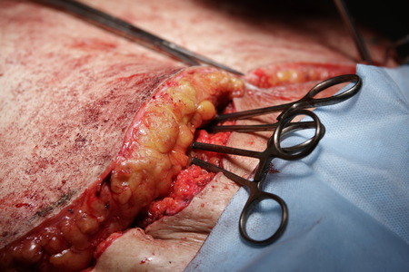 lesion after doctor use a surgery blade open surgery area,fat removal