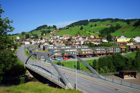 URNASCH, SWITZERLAND - CIRCA JULY 2016 Metal bridge and road