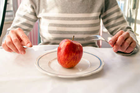red Apple on a white plate with Cutlery