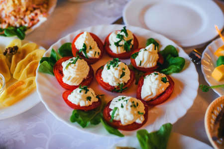 Delicacies and snacks at the buffet or banquet. Catering. snacks on the table at the holiday. banquet snacks. canapes. catering
