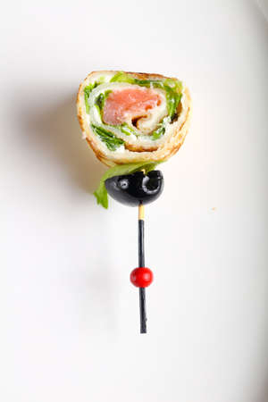 Snack canapes to the buffet on a white background