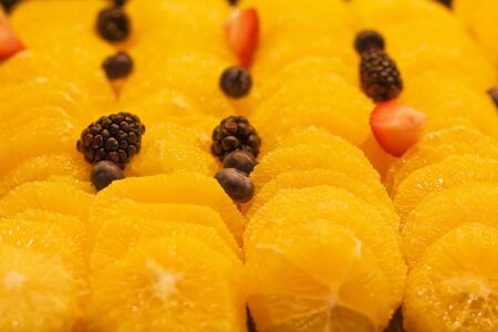 Fresh sliced oranges with berries in fruit buffet