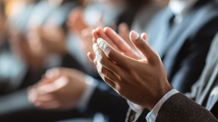 Applause from audience hands clapping formal attire celebration appreciation event atmosphere close up blurred background positive energy engagement
