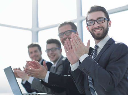 group of business people applauding sitting at his Desk