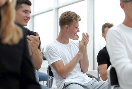 close up. diverse young participants of the workshop, applauded in unison
