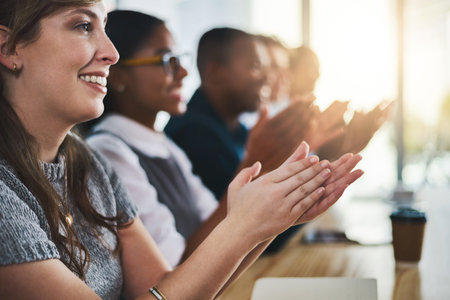 That deserves a great big round of applause. Closeup shot of an unrecognizable group of businesspeople applauding in an office.