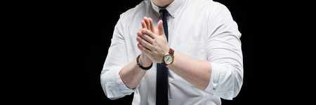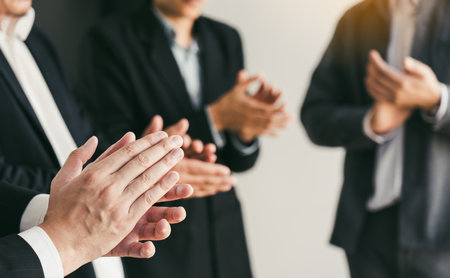 Hands of business professionals in formal suits clapping enthusiastically in appreciation and approval during a formal event or conference such as an awards ceremony presentation