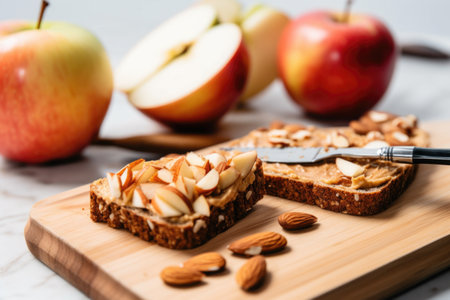 toast with almond butter, sliced apple, and a knife, created with generative ai