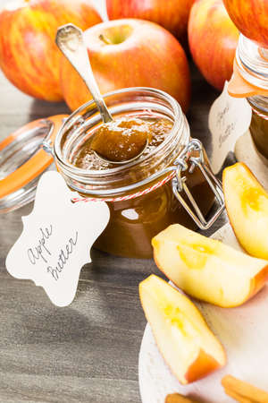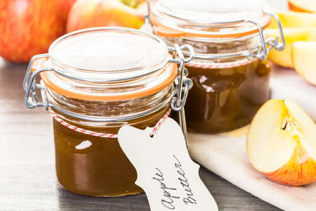 Homemade apple butter prepared from organic apples.