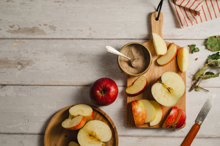 Ingredients for preparing homemade apple butter from organic apples.