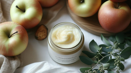 cosmetics apple ingredients top view, realistic illustration
