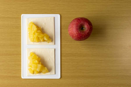 Delicious Sliced Apple and Chocolate Chip Toast on Marble Background, Fresh Ingredients for Healthy Breakfast or Snack Idea, Tasty and Nutritious Food