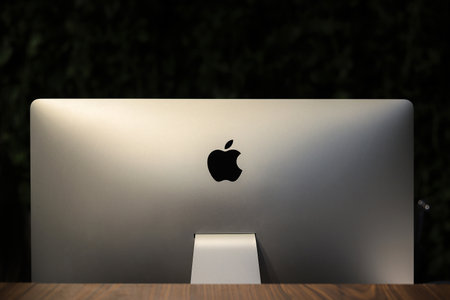 BELGRADE, SERBIA - MARCH 8, 2017: Detail of the iMac computer. It is Macintosh desktop computers designed and built by Apple Inc