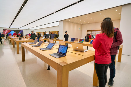 HONG KONG, CHINA - CIRCA JANUARY, 2019: interior shot of Apple store in Hong Kong.
