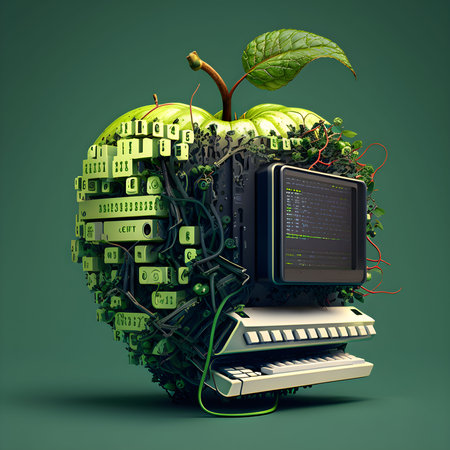 An AI generated illustration of a vibrant and modern display of computer technology in a green apple