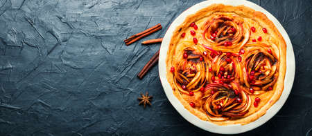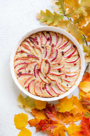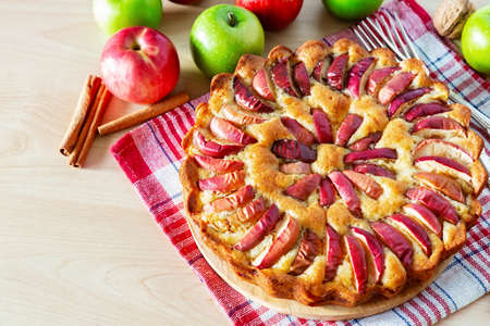 Autumn homemade pie or cake with apples.Copy space