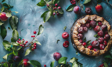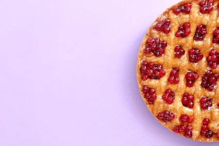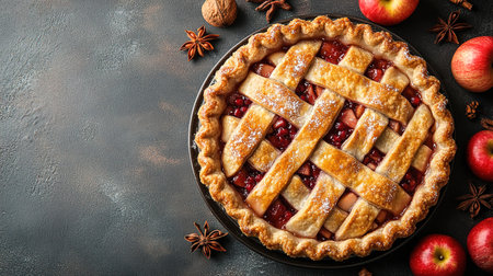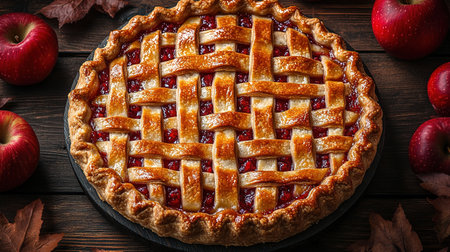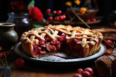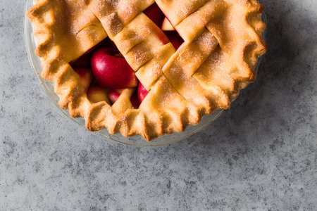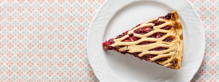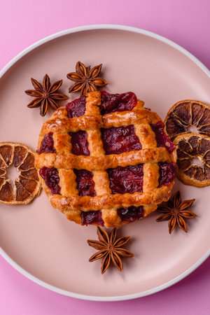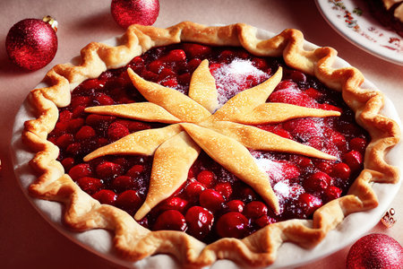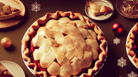Cherry sweet American Christmas pie or tart. American cherry pie as a food backdrop for your design