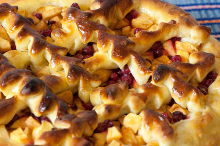 Homemade apple pie with cranberries close up