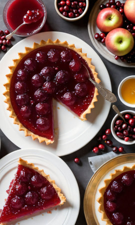 Cranberry Tart. Delicious cranberry tart with jellied and fresh cranberries for Christmas