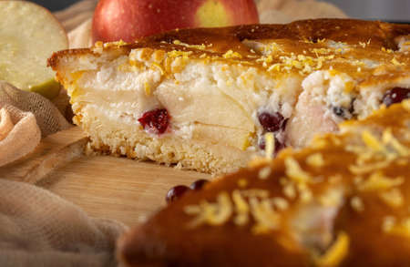 Pie with cherry-apple filling, beautiful cut. Macro shot.
